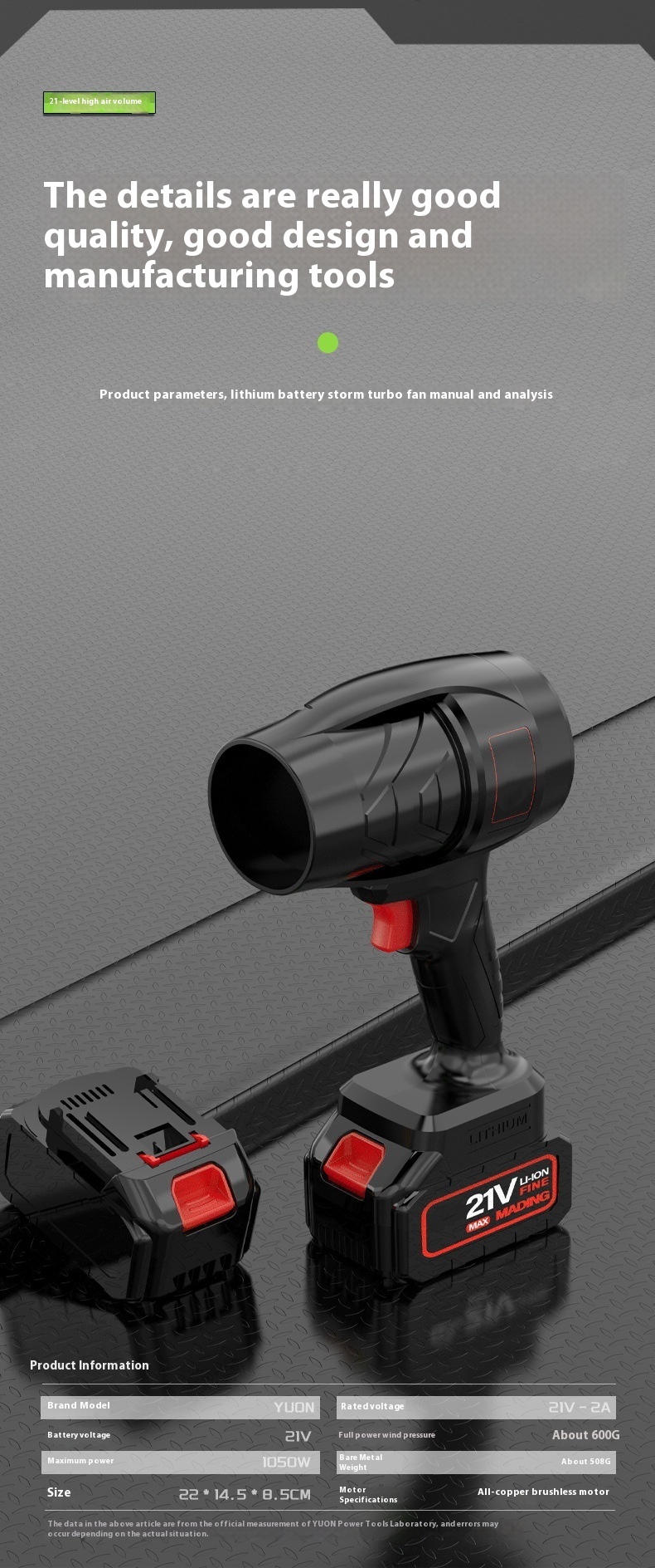 Rated voltage range: 16.8-21V